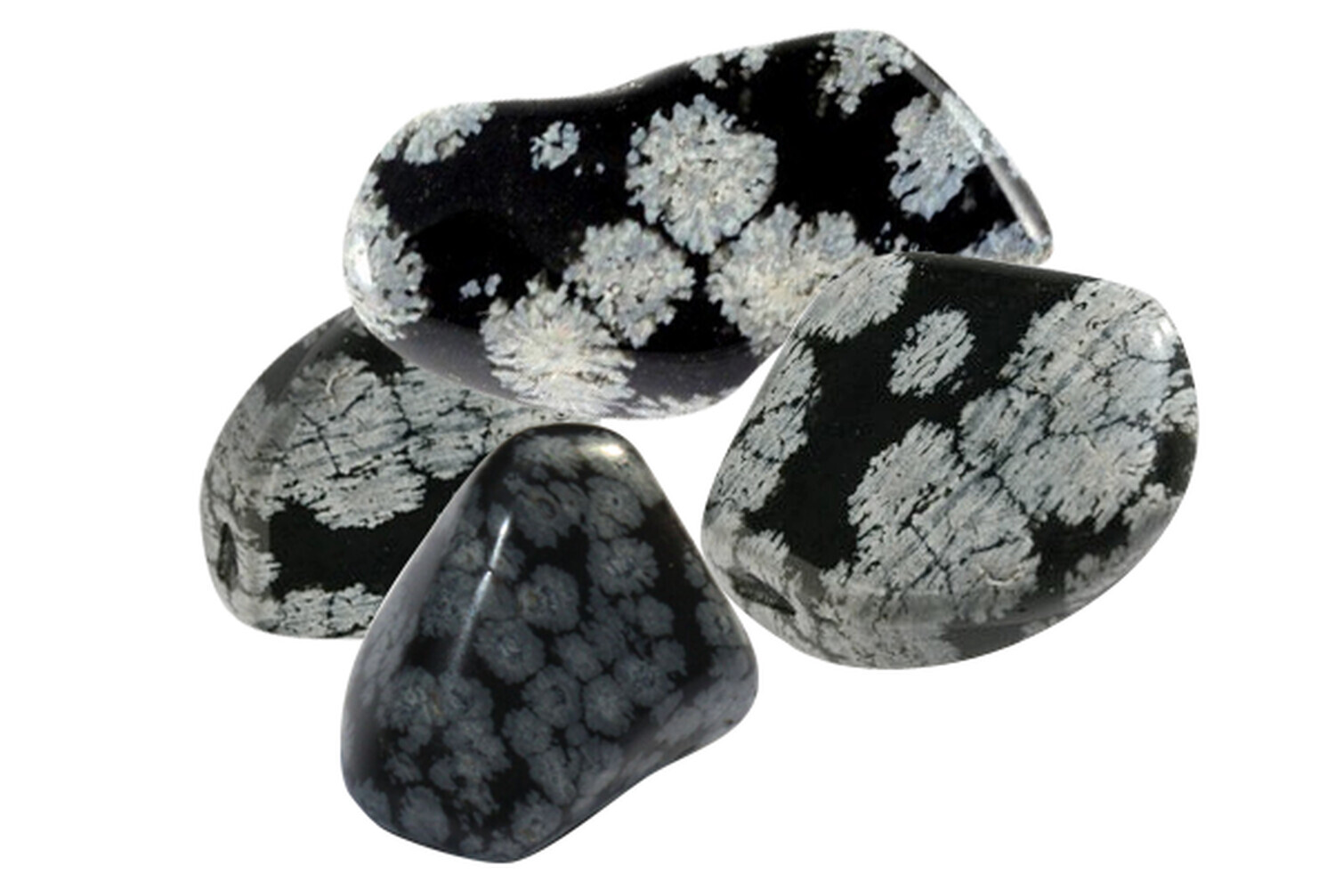 Pierres roulées Obsidiennes Mouchetées en sac de 500 Gr. Dimension des pierres : entre 2 et 4 cm. Aussi appelée Obsidienne Flocon de Neige ou Etoilée, cette pierre fait partie de la famille des roches volcaniques, sa couleur est noire avec des tâches grises. Permet de retrouver l'enfant en soi, sa vivacité et spontanéité, aide à la déconnection en méditation ou lors de voyages initiatiques. Protectrice et rassurante, elle nous relie à la terre, chasse les illusions et les dépressions. Régule la circulation sanguine, améliore la vue et accélère le processus de cicatrisation.
