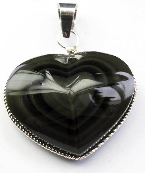 Pendentif coeur Obsidienne Oeil Céleste - Monture torsadée