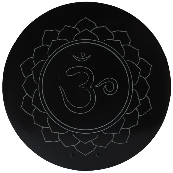 Porte-encens rond et plat, en stéatite (pierre à savon, pierre ollaire), représentant le chakra Sahasrara. C'est une roche magmatique, contenant majoritairement du talc et autres minéraux (fer, calcium, magnésium). Etant une pierre résistante mais très facile à tailler, elle a été largement utilisée dans l'artisanat, la sculpture. Signification du chakra couronne : union avec le Soi, intégration. Diamètre : 10 cm. Epaisseur : 1,5 cm. Vendus par lot de 2.