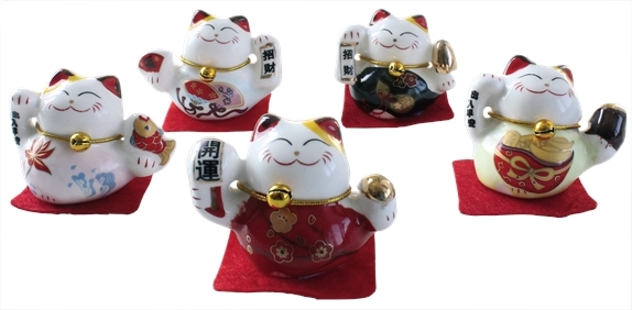 Ensemble de 5 Chats Maneki Neko en porcelaine
