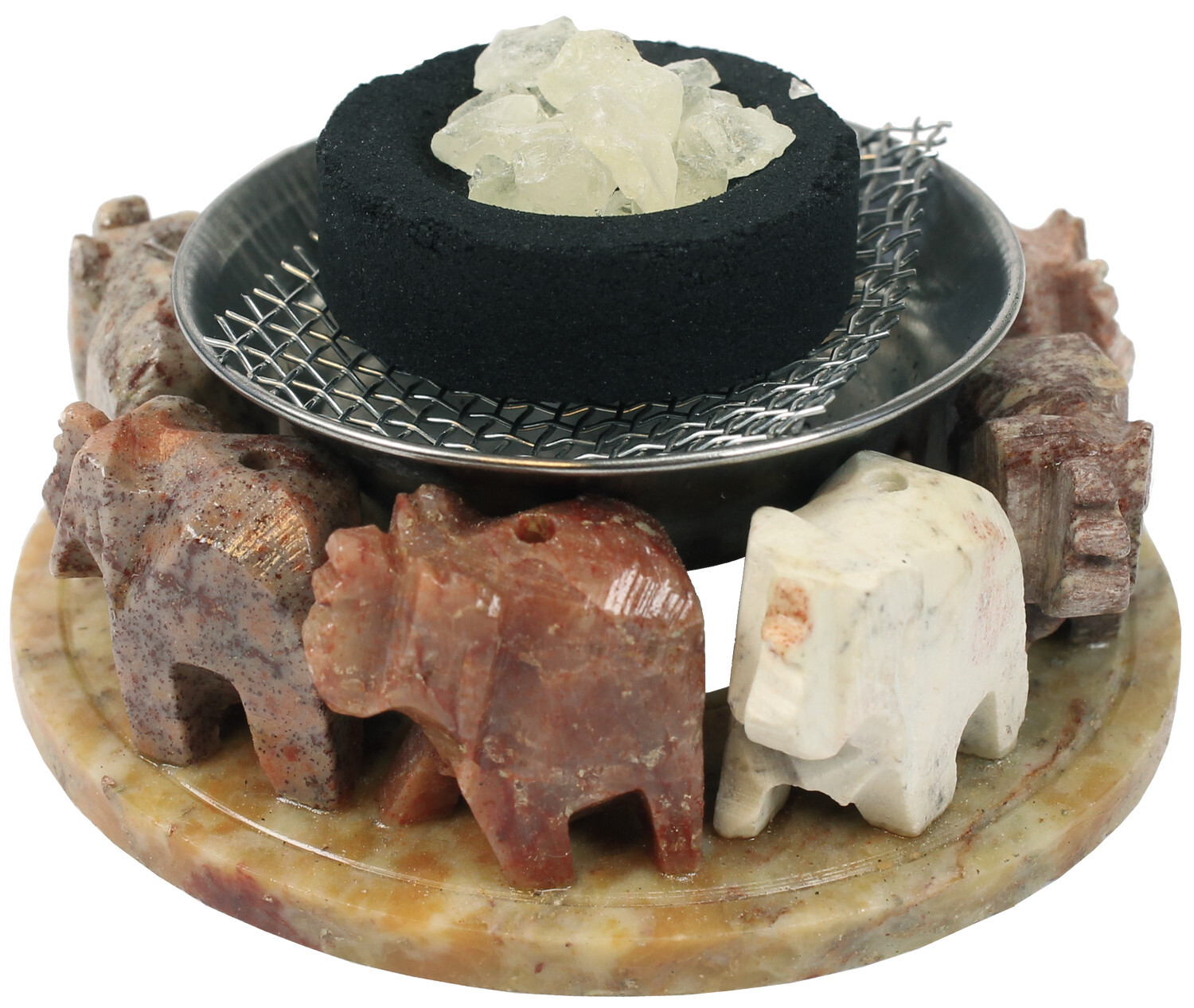 Brûle-encens pierre 8 éléphants