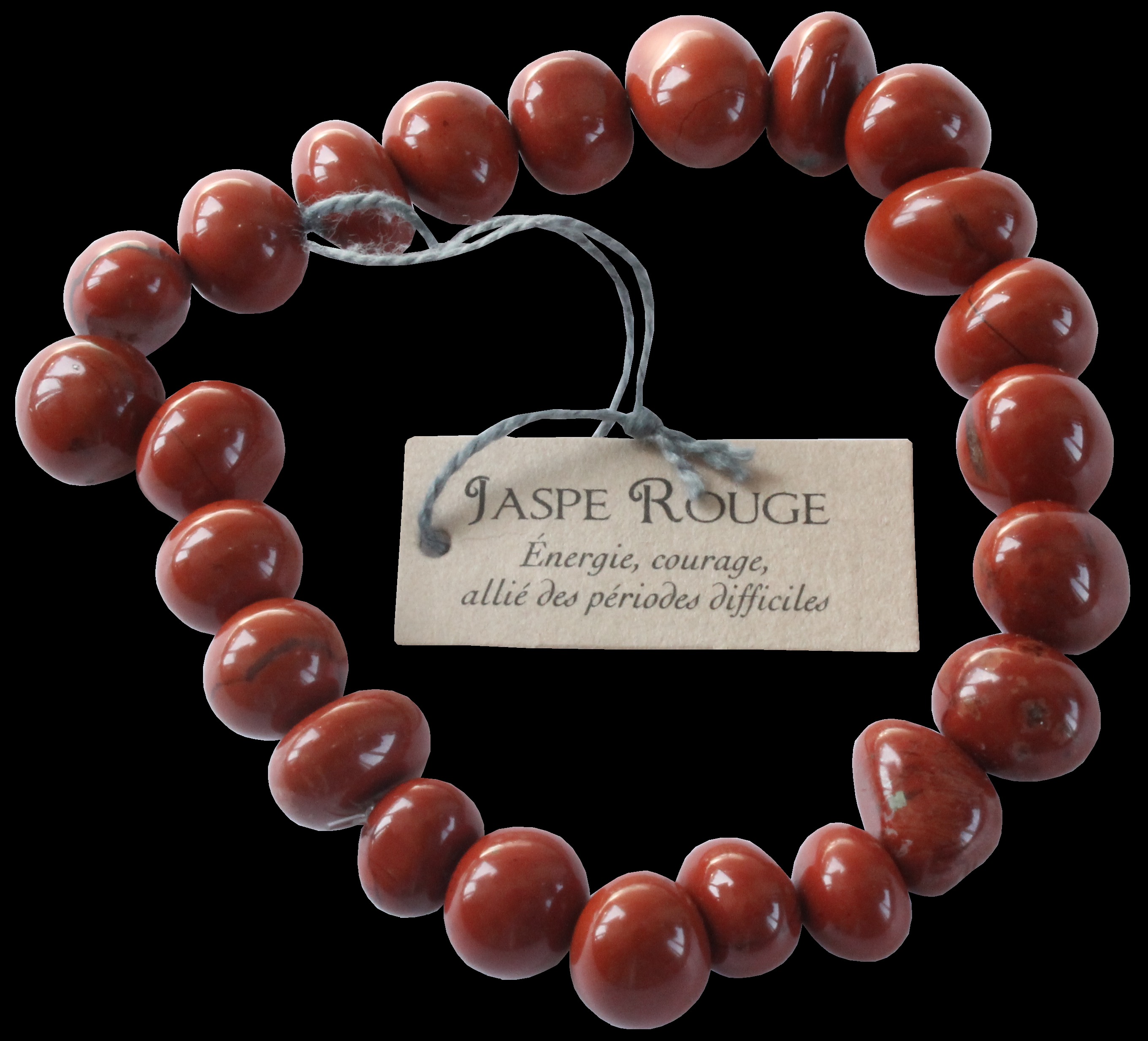 Bracelet pierres de jaspe rouge de forme plus ou moins ovale. Chaque pierre mesure environ 6 mm. Vendus par lot de 3. Le jaspe rouge aide à sortir des périodes de grande fatigue nerveuse ou physique en redonnant de l'énergie profonde et durable. Donne la force et le courage de s'affirmer, d'affronter les difficultés de la vie.
