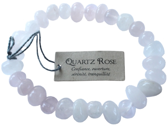 Bracelet pierres de quartz rose de forme plus ou moins ovale. Chaque pierre mesure environ 6 mm. Vendus par lot de 3. Le quartz rose apprend à s'aimer, réduit le stress, apporte la joie. Il est très apprécié de la plupart des personnes pour sa douceur et l'aide qu'il apporte sur l'acceptation de soi.