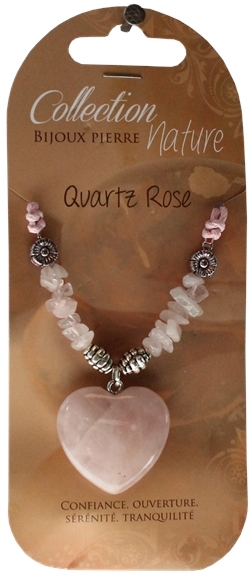 Collier pendentif cœur et perles baroques - Quartz Rose