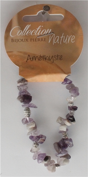 Bracelet de perles baroques d'améthyste monté sur élastique silicone, avec quelques éléments décoratifs en métal argenté. Diamètre du bracelet 5,5cm. Vendus par lot de 6 ex.