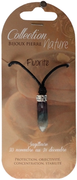 Pendentif pointe polie de fluorite monté sur cordon noir. Hauteur de la pointe : 3 cm. Vendus par lot de 6 ex. Hautement protectrice, la Fluorite favorise la concentration, la coordination et l'esprit d'analyse. Elle saura vous stabiliser afin de vous permettre d'agir avec objectivité et impartialité.