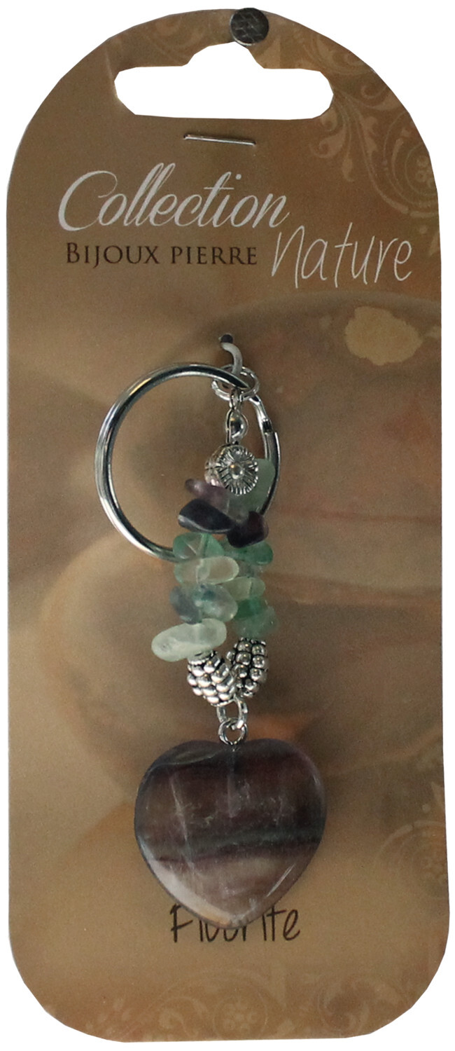 Porte-clef cœur et pierres baroques - Fluorite