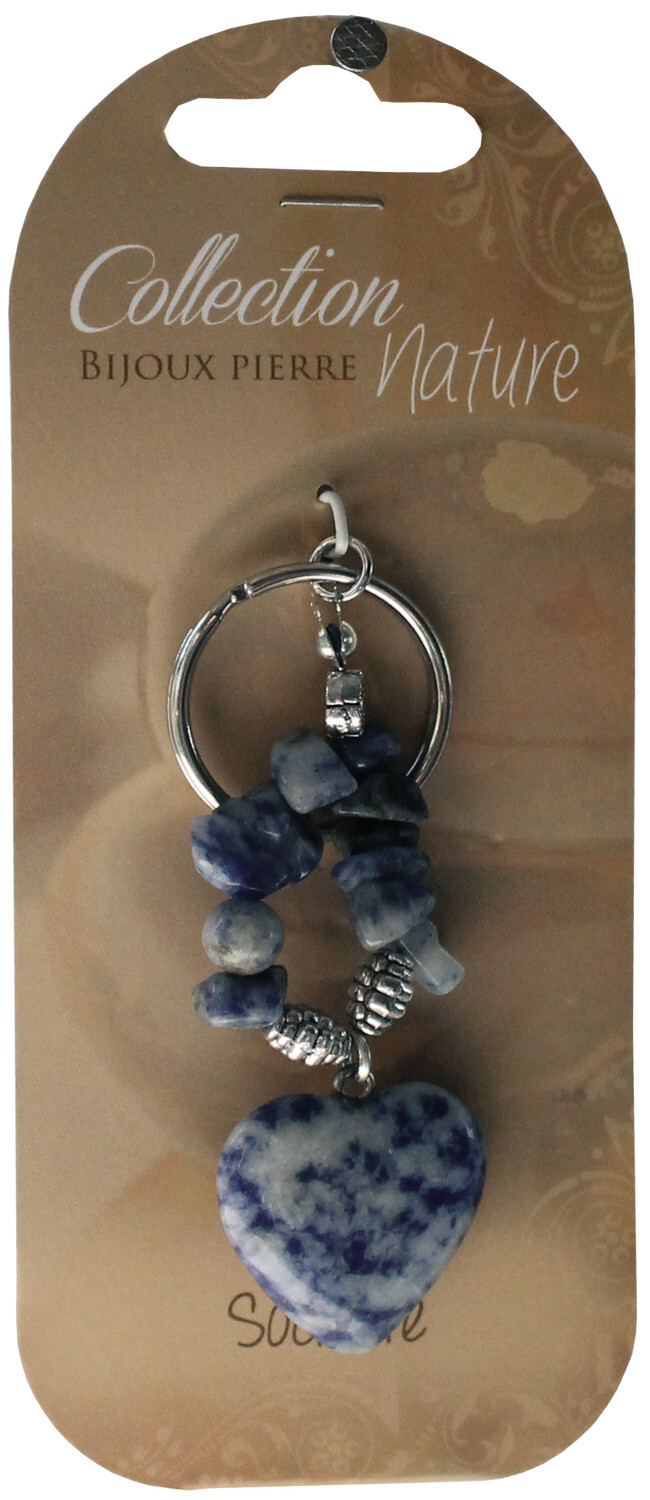 Porte-clef cœur et pierres baroques - Sodalite