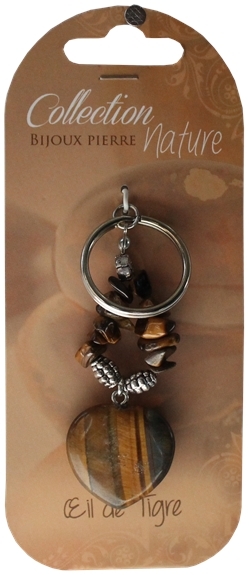 Porte-clef cœur et pierres baroques - Œil de tigre
