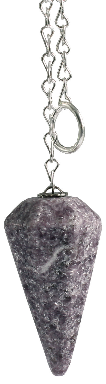 Pendule à facettes en lépidolite, hauteur environ 4 cm - Diamètre : 2 cm. Pierre anti-stress, elle calmerait les états de tension et dissiperait les craintes. Protègerait pendant le sommeil et éloignerait les cauchemars. Apporterait un sommeil paisible et réparateur.