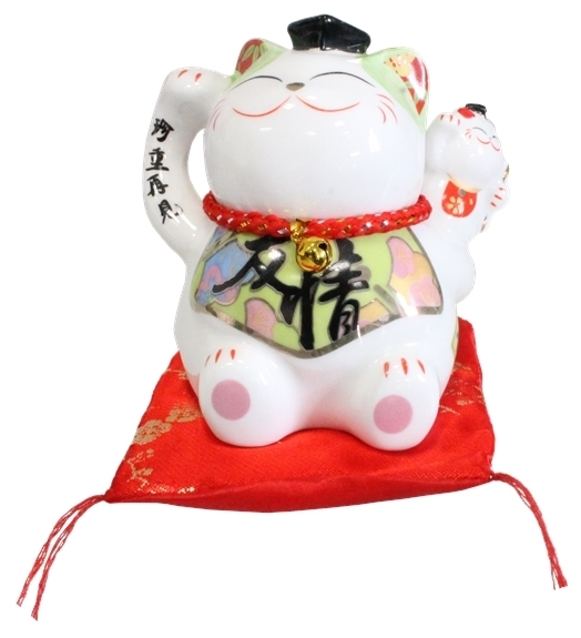 Magnifique tirelire Chat Maneki Neko en céramique, hauteur 10,5cm. Ce chat Maneki Neko porte-bonheur favorisera l'amitié entre vous et vos proches. Le Maneki Neko, appelé aussi couramment chat japonais porte-bonheur est une statuette traditionnelle de la culture Japonaise.