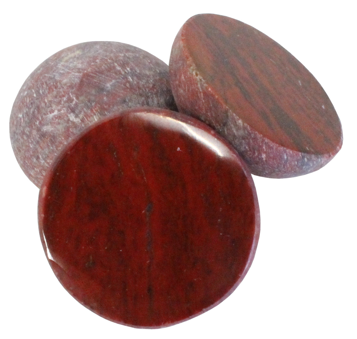 Galet Jaspe Rouge 1 Face Polie [DESCRIPTION] Aide à sortir des périodes de grande fatigue nerveuse ou physique en redonnant de l'énergie profonde et durable. Donne la force et le courage de s'affirmer, d'affronter les difficultés de la vie. Accélère la cicatrisation, active la circulation sanguine et régule le foie. Renforce les organes sexuels mâles et lutte ainsi contre l'impuissance [CARACTÉRISTIQUES] Diamètre : 3 cm environ.
