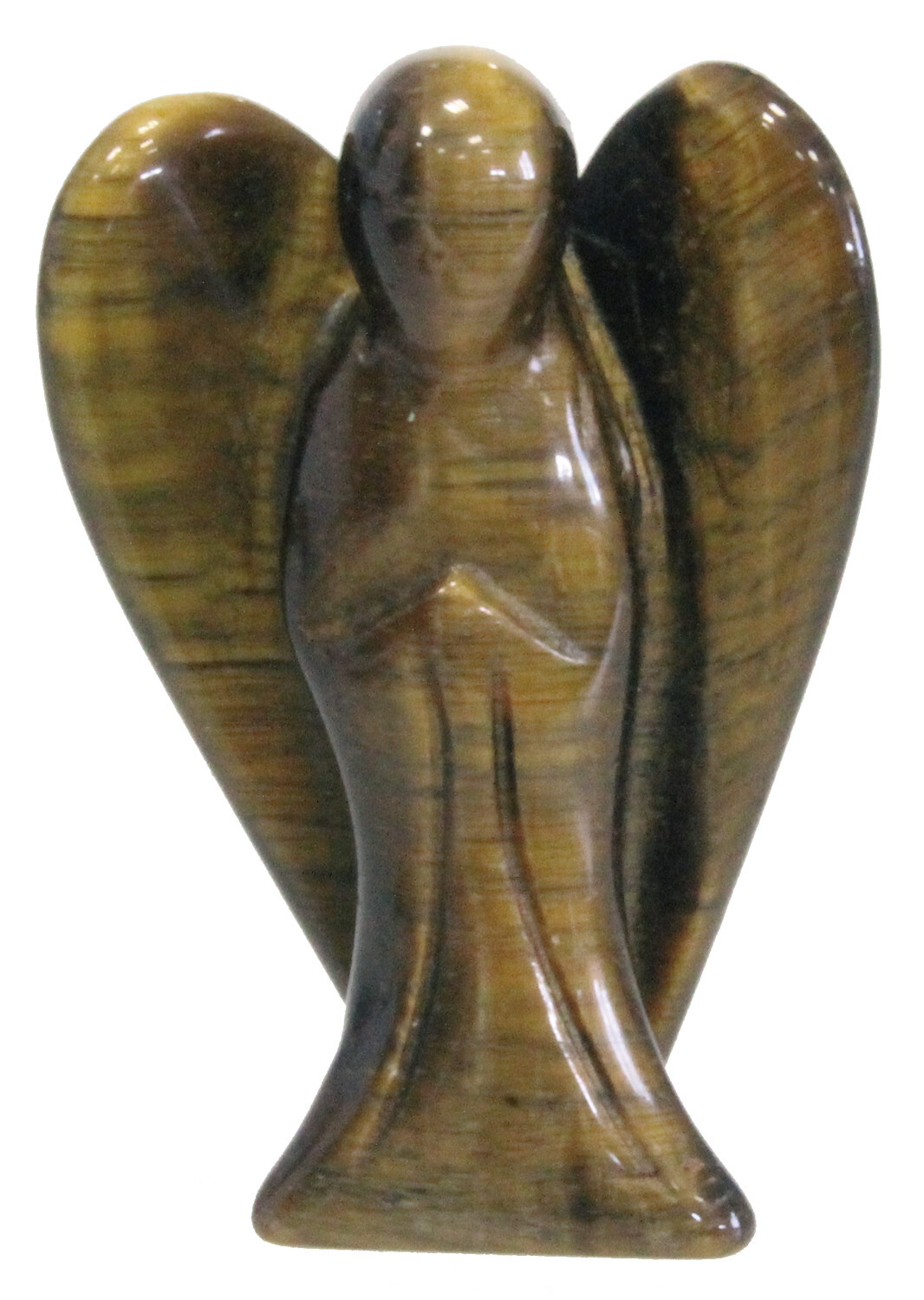 Ange en Oeil de Tigre de qualité extra, taillé et poli à partir d'une seule pièce. Hauteur : 4 cm. Superbe pièce livrée dans une pochette suédine. Grande pierre de protection, L'Oeil de Tigre crée autour de soi un miroir qui renvoie les énergies négatives à leur origine. Elle contre les mauvaises pensées des personnes envieuses. Aide à identifier nos besoins et nos préférences tant dans nos choix de vie que dans nos relations.
