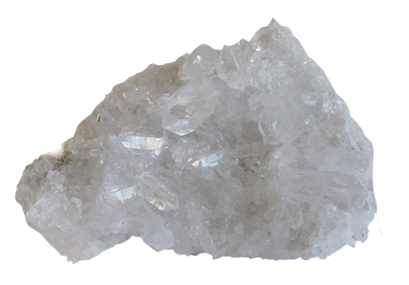 Le Cristal de Roche clarifie nos idées et nos émotions, chassant le superflu et renforçant nos convictions, nos idéaux. Il accentue les propriétés des pierres qui l'accompagnent et leur confère plus de puissance lorsque les leurs effets sont trop discrets. Toutes les programmations sont possibles sur le Cristal de Roche, ce qui en fait la pierre universelle en lithothérapie. Les amas de cristaux de roche amplifient les effets du cristal de roche et les diffusent dans toutes les directions. Ce sont d'excellentes pierres pour élever le taux vibratoire dans un lieu de vie et diffuser des énergies lumineuses. Un amas purifié et chargé transmet son énergie aux pierres placées en son centre. On peut l'utiliser en intérieur, ou placé au soleil ou à la lune pour accélérer et amplifier le rechargement des autres pierres.