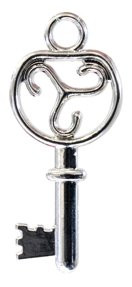 Lot de 5 pendentifs forme clé en métal argenté. Annule les ondes négatives. Symbole des trois forces de la nature : "eau, air et feu". Dimensions : 3 cm x 1,2 cm x 0,2 cm