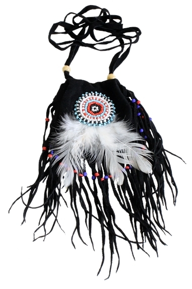 Cette pochette en daim façon « médecine bag » repliable est idéale pour garder une pierre, un totem ou autre souvenir autour de votre coup (lanière de 32 cm). Elle peut également servir de porte-monnaie. Ornée de perles et de plumes. Longueur avec les franges : 19 cm. Dimensions de la pochette repliée : 7,5 x 7,5 cm. Coloris aléatoires.
