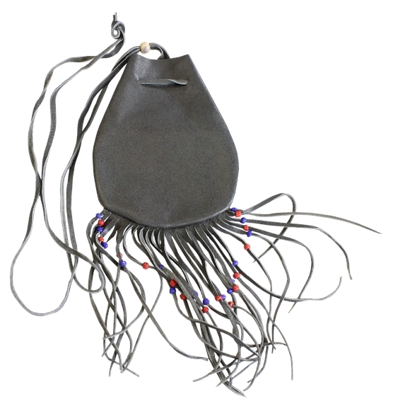 Sac en cuir qui s'accroche autour du cou. Ce type de sac était autrefois très populaire chez les Indiens des Plaines pour transporter les herbes sacrées. Idéal pour garder une pierre, un cristal, un totem spécial ou tout autre souvenir. Ce « medicine bag » possède une longue lanière de 50 cm. Longueur avec les franges : 26 cm. Dimensions de la pochette : 8,5 x 13,5 cm. Coloris aléatoires.