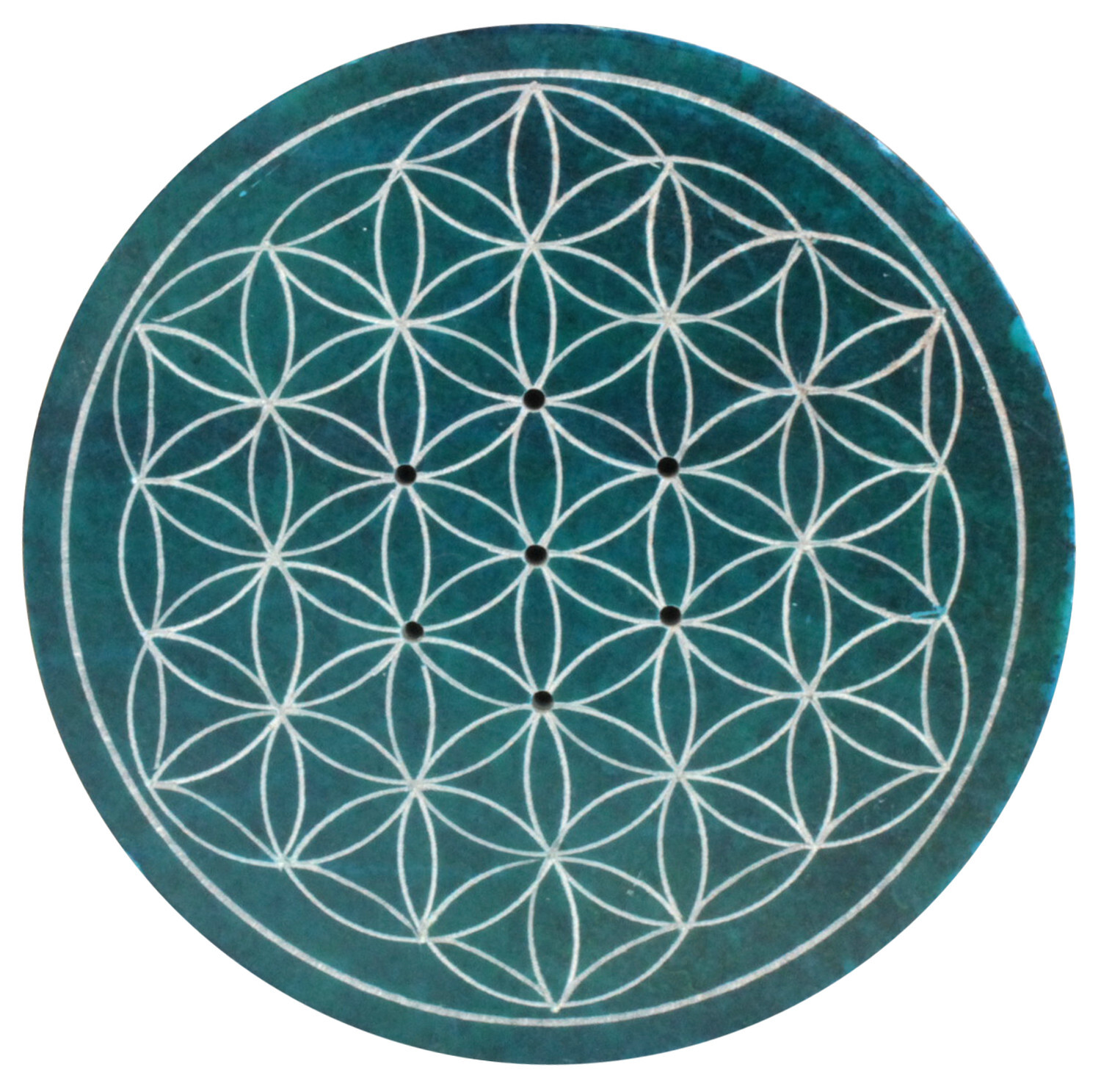 Porte-encens vert bleuté gravé Fleur de Vie