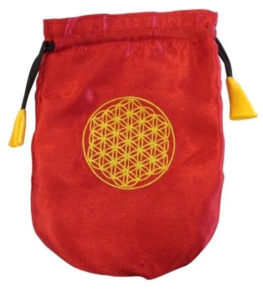 Pochette Satinée Rouge Brodée Fleur de Vie