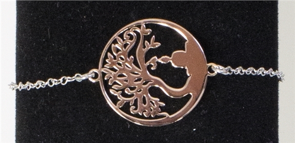 Bracelet en argent 925/1000 trempé plaqué or rose représentant la méditation sous un Arbre de Vie. L'arbre est, dans de nombreuses traditions, le symbole de la vie et du lien entre la terre et l'infini céleste. Diamètre : 2 cm - Longueur réglable 20 cm environ .