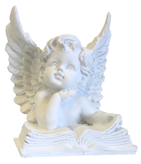 Figurine buste d'Ange rêveur accoudé sur un livre en résine blanche Dimensions : 12 cm x 10 cm x 8 cm. Modèle aléatoire selon réception. Visuels non contractuels.