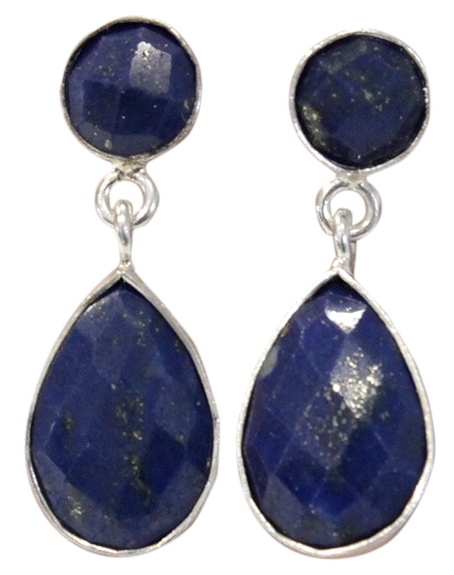Boucles d'Oreilles en argent avec goutte sertie en Lapis Lazuli facettée. Considéré par les égyptiens comme une pierre de voyage de l'âme des défunts, le Lapis Lazuli permet en un mot le dépassement. Dépassement des idées reçues, des difficultés et des conflits intérieurs, cette pierre favorise tant l'identification de nos nœuds que l'ouverture d'esprit nécessaire pour élaborer des solutions aboutissant à leur dénouement. Hauteur : 3,5 cm environ.