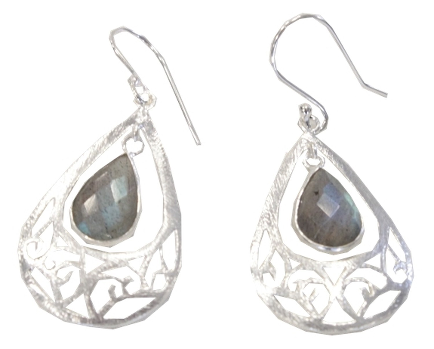 Boucles d'Oreilles en argent avec goutte Labradorite facettée. Célèbre pour ses capacités de protection, la Labradorite crée un bouclier contre les influences négatives. Elle est ainsi la pierre des thérapeutes, des médecins et apporte de l'aide aux personnes en difficultés. C'est aussi une pierre qui développe l'intuition, la sensibilité profonde et qui apporte une grande clarté d'esprit. Elle apporte aisance et harmonie dans les relations humaines. Hauteur : 4,5 cm environ. [PACKAGING] Cartonnette en carton accrochée au produit avec un fil