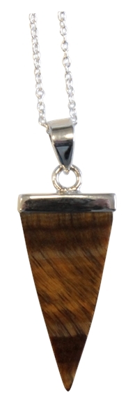 Collier en argent avec pendentif pointe plate en Oeil de Tigre. Grande pierre de protection elle crée autour de soi un miroir qui renvoie les énergies négatives à leur origine. Elle contre les mauvaises pensées des personnes envieuses. Aide à identifier nos besoins et nos préférences tant dans nos choix de vie que dans nos relations. Hauteur : 3 cm - Largeur : 1,5 cm.