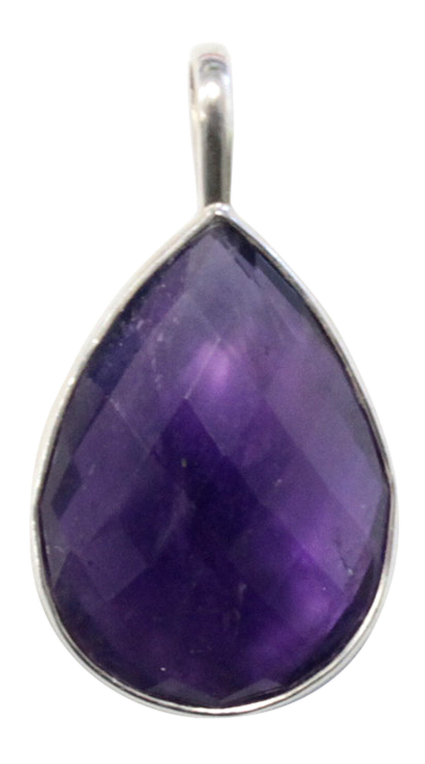Pendentif en argent 925. L'Améthyste dissipe les peurs irraisonnées et les phobies. Soutient toute lutte contre la dépendance physique ou psychique. Ouvre l'imaginaire et favorise les rêves. Offre un sommeil sain et réparateur à toute personne habituée aux rêves mais impose des nuits agitées aux autres. Développe l'intuition. Hauteur : 2,5 cm.