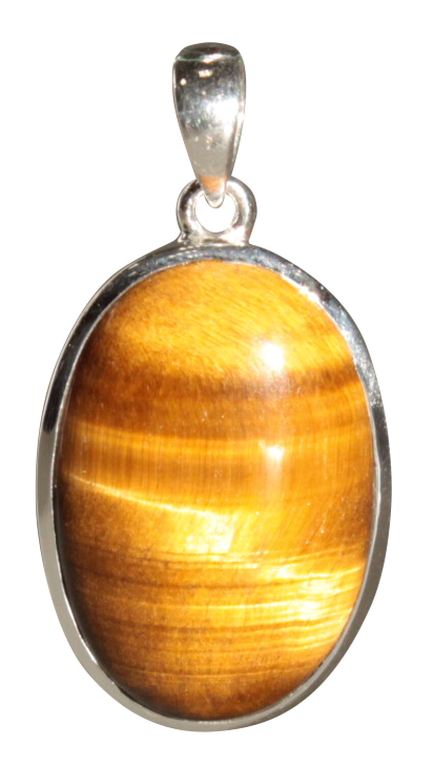 Pendentif en Argent 925, forme Ovale avec pierre naturelle Oeil de Tigre. Taille de la pierre : 2 x 3 cm.