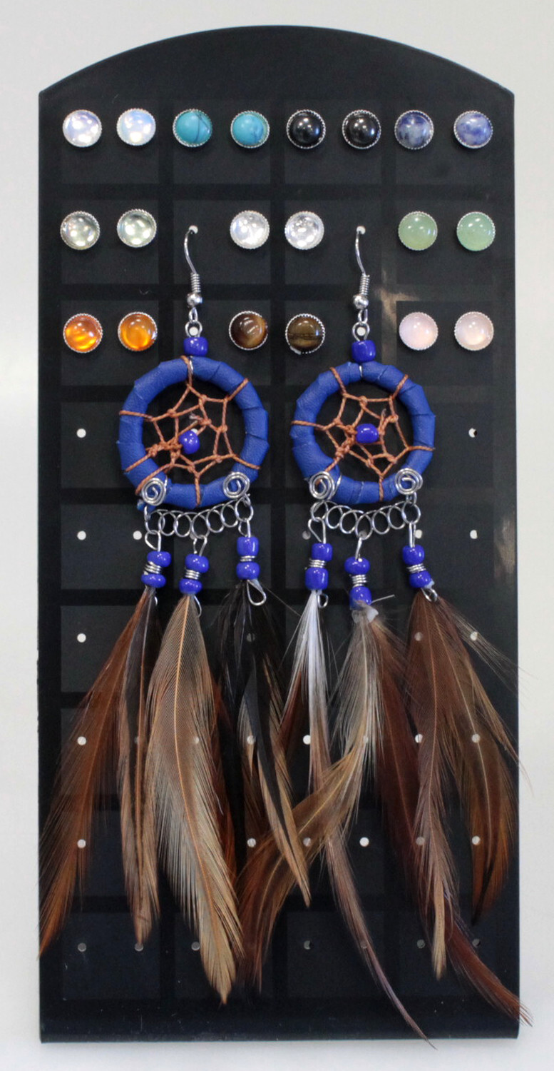 Présentoir en plastique pour boucles d'oreilles pouvant contenir 36 paires. Hauteur 19 cm - Largeur : 9 cm.