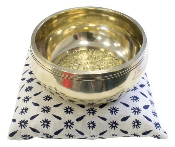 Les coussins de support pour bols chantants tibétains sont utilisés lors des cérémonies bouddhistes ou lors des séances de méditation et sont de fabrication 100 % artisanale. Coussin bol chantant tibétain blanc et bleu qui mettra en valeur vos bols chantants tibétains. Garni de sable pour garantir un meilleur support pour les bols. Peut aussi être utlisé comme support pour vos sphères.Dimensions : 15 x 15 cm.