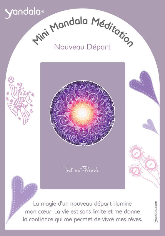 Dimensions : 15 x 10,5 cm. La visualisation des mandalas permet d'amorcer un magnifique voyage intérieur et d'atteindre un niveau de conscience profond. Observez la carte en vous imprégnant des formes et des mouvements. Concentrez-vous et laissez vous aller à la relaxation. Mémorisez et ressentez au plus profond de vous même le texte écrit au dos de la carte. Grâce aux mini mandalas de méditation, vous activez positivement vos forces intérieures et votre mental. Vous pourrez ainsi créer une harmonie entre le corps et l'esprit qui vous accompagnera au quotidien et vous apportera force, courage, espoir et joie. Pour choisir votre mini yandala laissez-vous porter par votre intuition. Ce travail vous permettra de réfléchir sur vos besoins actuels et de les cibler avec clarté. Cette collection de 12 Yandala est réalisée et peinte à la main par l'artiste allemande Yvonne Lamberty. Nouveau Départ - Tout est Possible : La magie d'un nouveau départ illumine mon coeur. La vie est sans limite et me donne la confiance qui me permet de vivre mes rêves. Copyright By Yvonne Lamberty.