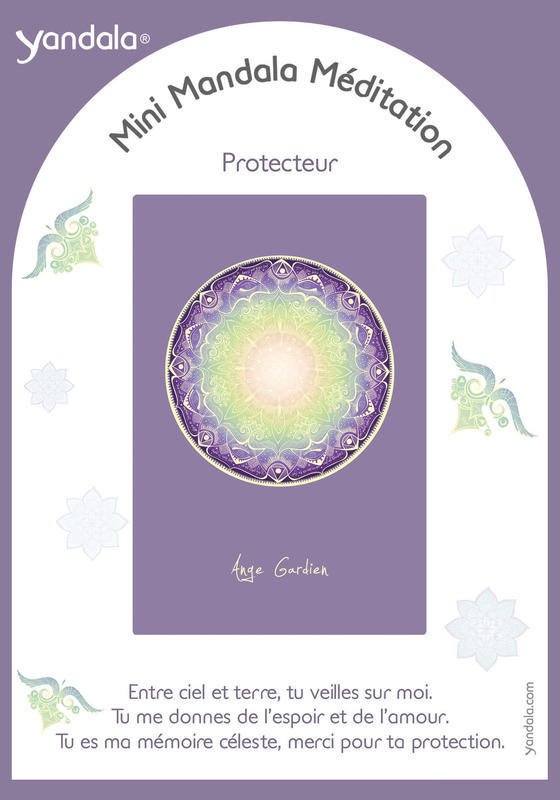 Dimensions : 15 x 10,5 cm. La visualisation des mandalas permet d'amorcer un magnifique voyage intérieur et d'atteindre un niveau de conscience profond. Observez la carte en vous imprégnant des formes et des mouvements. Concentrez-vous et laissez vous aller à la relaxation. Mémorisez et ressentez au plus profond de vous même le texte écrit au dos de la carte. Grâce aux mini mandalas de méditation, vous activez positivement vos forces intérieures et votre mental. Vous pourrez ainsi créer une harmonie entre le corps et l'esprit qui vous accompagnera au quotidien et vous apportera force, courage, espoir et joie. Pour choisir votre mini yandala laissez-vous porter par votre intuition. Ce travail vous permettra de réfléchir sur vos besoins actuels et de les cibler avec clarté. Cette collection de 12 Yandala est réalisée et peinte à la main par l'artiste allemande Yvonne Lamberty. Protecteur - Ange Gardien : Entre ciel et terre, tu veilles sur moi. Tu me donnes de l'espoir et de l'amour. Tu es ma mémoire céleste, merci pour ta protection. Copyright By Yvonne Lamberty.