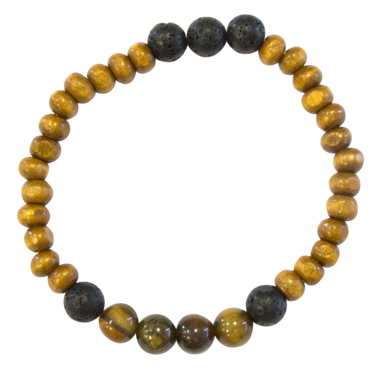 Bracelet H Bois, Oeil de Tigre et Pierre de lave Perles rondes 8 mm