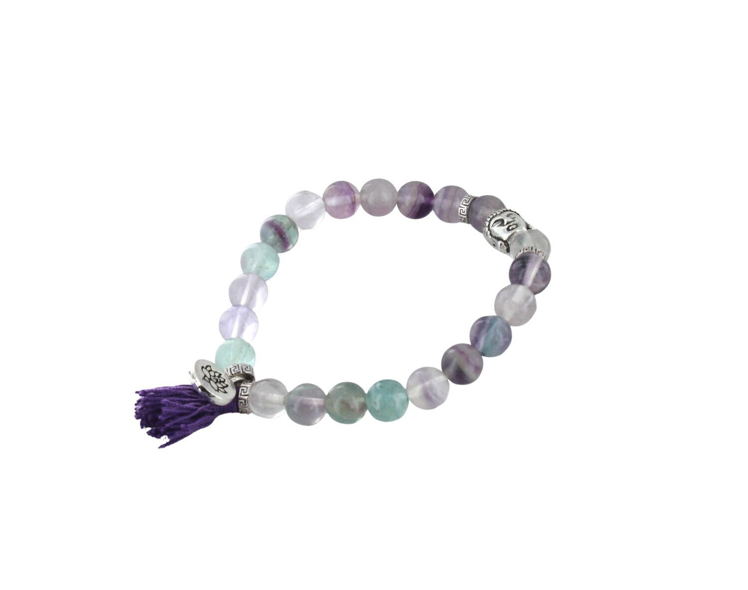Bracelet Fluorite Perles rondes 8 mm Pompon et Lotus