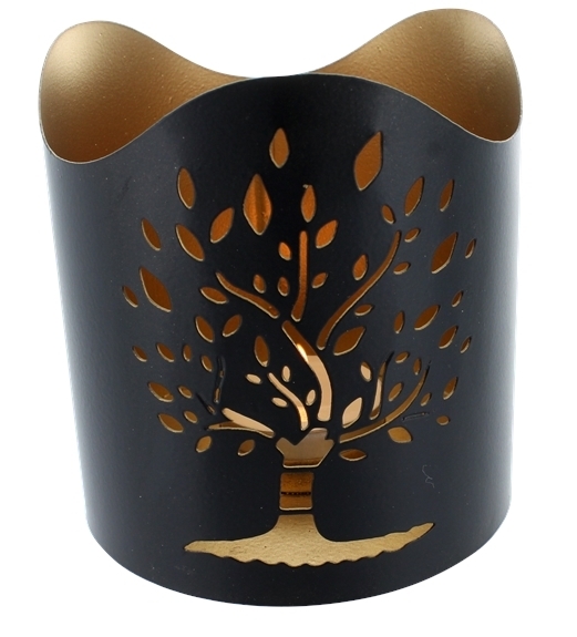 Photophore en métal noir avec intérieur doré - Arbre de Vie