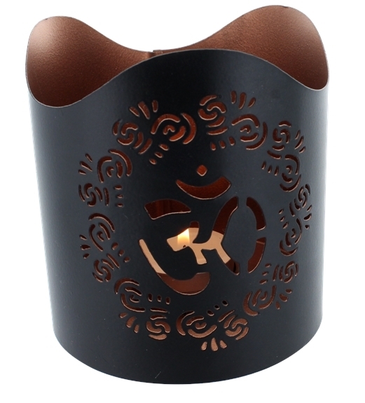 Photophore avec découpe Om, de couleur noire à l'extérieur et dorée à l'intérieur. Dimensions : Hauteur 10.8 cm - Diamètre 10 cm. le mantra OM est un des plus connus, c'est le son universel qui contient en lui la vibration de l'Univers et dont la répétition nous met en harmonie avec la conscience universelle. Associé à votre pratique de méditation, ce photophore vous aidera à trouver un sentiment de paix intérieure. À utiliser avec des bougies au diamètre inférieur ou égal aux bougies de type chauffe-plat. Bougie non fournie.