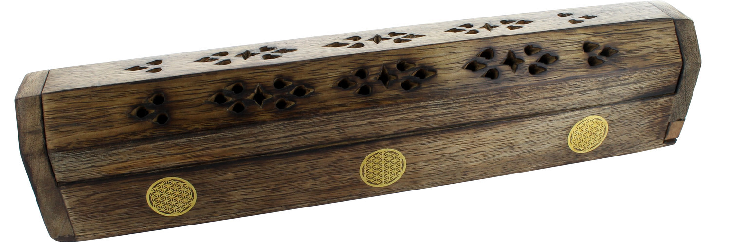 Boîte Bois Porte-encens avec réserve - Ornement Fleur de Vie