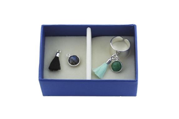 Coffret bague pierres et pompons interchangeables - Labradorite et Aventurine Verte