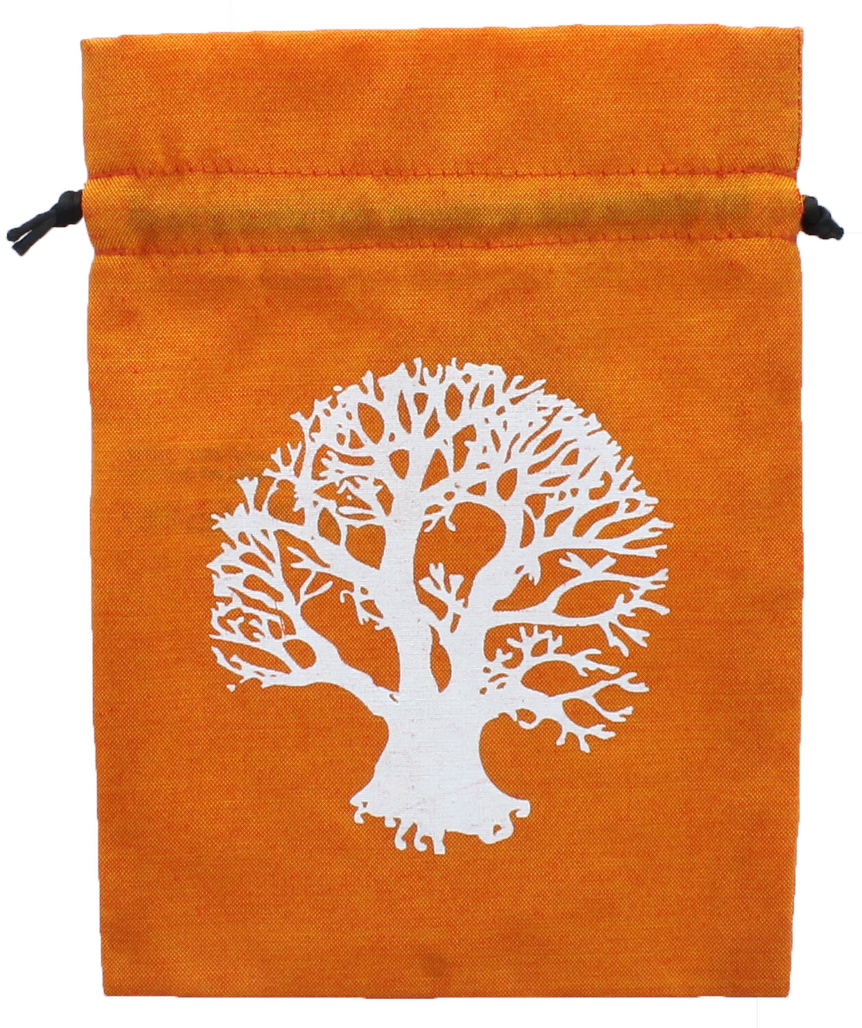Bourse pour tarots et oracles Arbre de Vie de couleur orange. En coton et polyester. Dimensions : 15 x 20 cm.