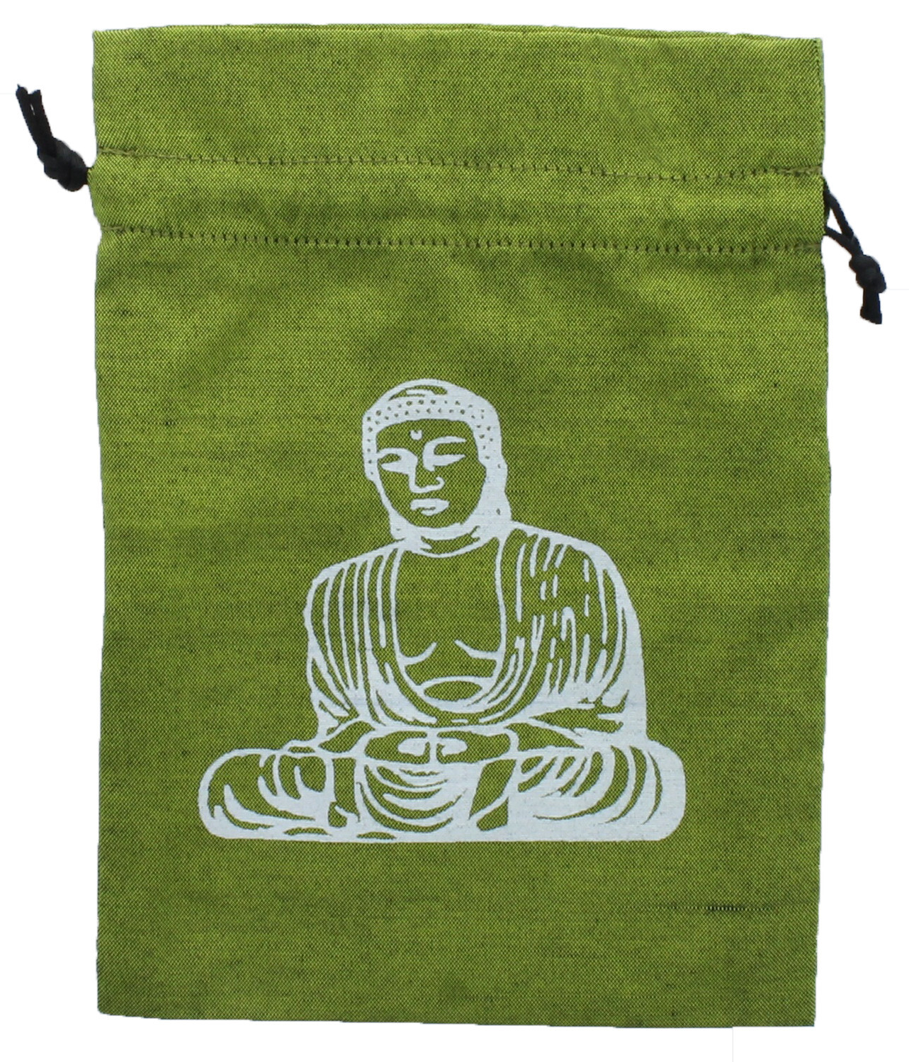 Bourse pour tarots et oracles Bouddha de couleur verte. En coton et polyester. Dimensions : 15 x 20 cm.