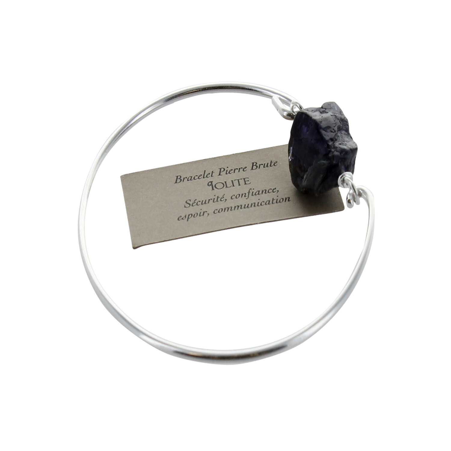 Bracelet en argent surmonté d'une pierre brute Iolite. La Iolite instaure sécurité et confiance, pierre qui chasse les idées noires et donne de l'espoir dans les situations difficiles. Elle facilite également la communication et intensifie l'intuition.