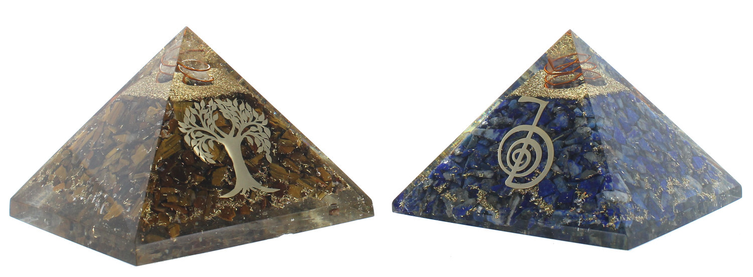 Pyramide Orgonite Oeil de Tigre avec Symbole Arbre de Vie
