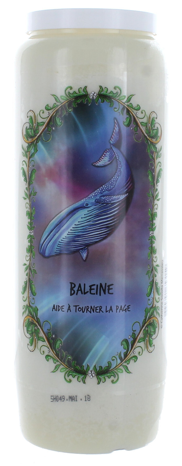 Neuvaine animal totem : Baleine [DESCRIPTION] Aide à tourner la page. Raconte-moi l'Histoire de l'Humanité, plonge-moi au plus profond de mon être, afin que j'y rencontre la mienne. Ravive ma mémoire et celle de ma lignée, pour que je guérisse les souvenirs de mes ancêtres. J'entre dans ton ventre, je pénètre l'Univers, le subconscient, tout ce qui se cache sous la surface. Glissant dans tes abysses, je découvre mes ressentis cachés, je retrouve des connaissances et savoirs enfouis au fond des âges, langues anciennes, langages oubliés, trésors en héritage. Gardienne du Livre de nos vies, je te remets ce que tu peux archiver, je fais page blanche et j'ai enfin de moi-même une intime Compréhension. Moi, enfant de Ciel Père et de Terre Mère, je te remercie, Baleine, de m'aider à tourner une page et à écrire un nouveau chapitre, sur ce chemin de sagesse. Grâce à toi et avec toi, Je Grandis. [CARACTÉRISTIQUES] 100 % huile végétale - Hauteur : 17.9 cm.