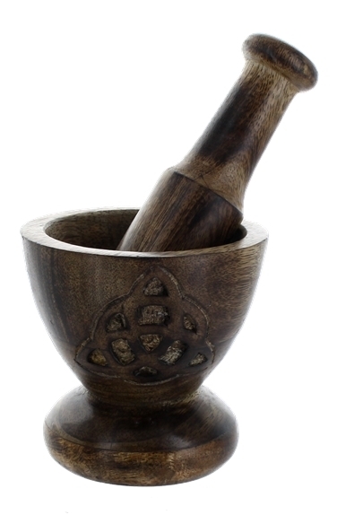 Mortier et pilon en bois design Triquetra. Idéal pour toutes préparations.