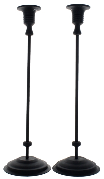 Lot de 2 chandeliers en métal teinté noir, conçus pour y piquer une bougie droite. Idéals pour agrémenter une table ou un dîner. Dimensions :10 ,5 cm x 35 cm.