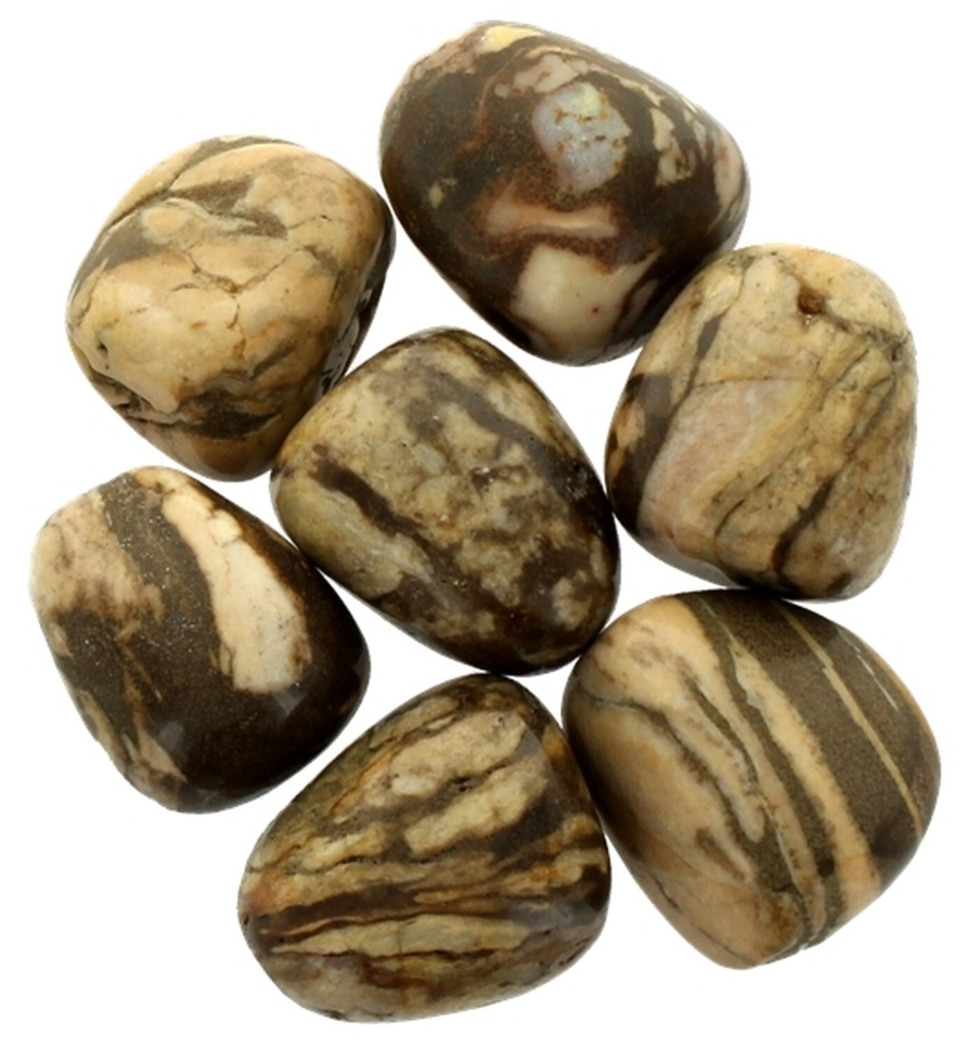 Pierres roulées de Jaspe Zébré du Brésil de qualité supérieure en sac de 500 gr, Taiile XL. Propriétés du jaspe zébré: comme le jaspe rouge il aide à sortir des périodes de grande fatigue nerveuse ou physique en redonnant de l'énergie profonde et durable. Donne la force et le courage de s'affirmer, d'affronter les difficultés de la vie. Accélère la cicatrisation, active la circulation sanguine et régule le foie. Renforce les organes sexuels mâles et lutte ainsi contre l'impuissance. Taille d'une pierre : 3,5 x 2,5 x 1,5 cm - Entre 8 et 10 pierres.