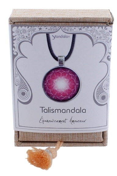 Pendentif Yandala Epanouissement Amoureux. Cette collection de Yandala est réalisée et peinte à la main par l’artiste allemande Yvonne Lamberty. Amour - Epanouissement Amoureux : Mon cœur s’ouvre, il est prêt à accueillir l’amour. Je me laisse porter par son intensité. La force de cet amour inconditionnel me touche en plein cœur et m’apporte légèreté. Copyright By Yvonne Lamberty. Pendentif en métal + plaquage rhodium - Diamètre 3 cm - Pendentif livré dans une boîte en tissu de couleur vieux rose munie d'un fourreau imprimé en quadrichromie reprenant toutes les propriétés du Yandala. Cordon noir inclus.