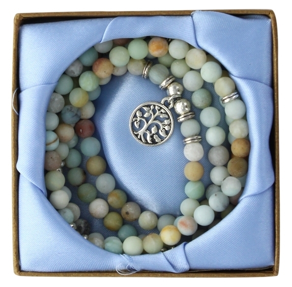 Mala en Amazonite - 108 Perles de 6 mm - Médaille Arbre de Vie avec boîte